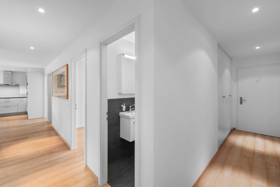 Une place de stationnement intérieure et une cave de 6m2 font partie de ce lot et il y a la possibilité d’acquérir une seconde place en sous-sol en supplément pour CHF 35’000.-