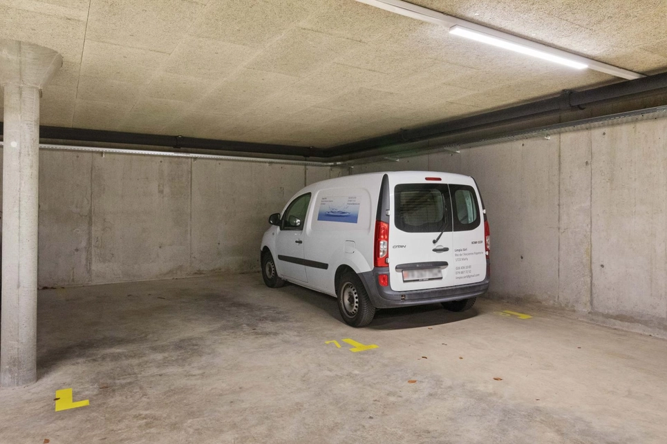 2 places de parking intérieures dans garage souterrain sécurisé à **CHF 35’000.-/place** avec possibilité d’installation de bornes pour véhicules électriques.